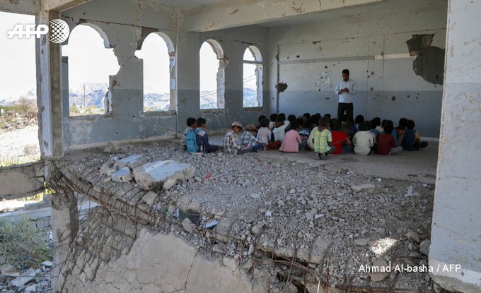 Một lớp học ngày khai giảng tại Taez, Yemen.