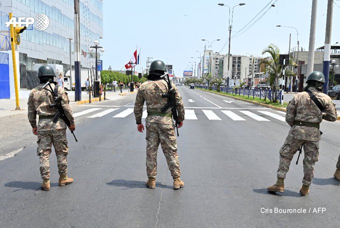 Bộ đội Peru tuần tra tại Lima trong lúc nước này cưỡng chế cách ly toàn quốc và tự cách ly tại nhà.
