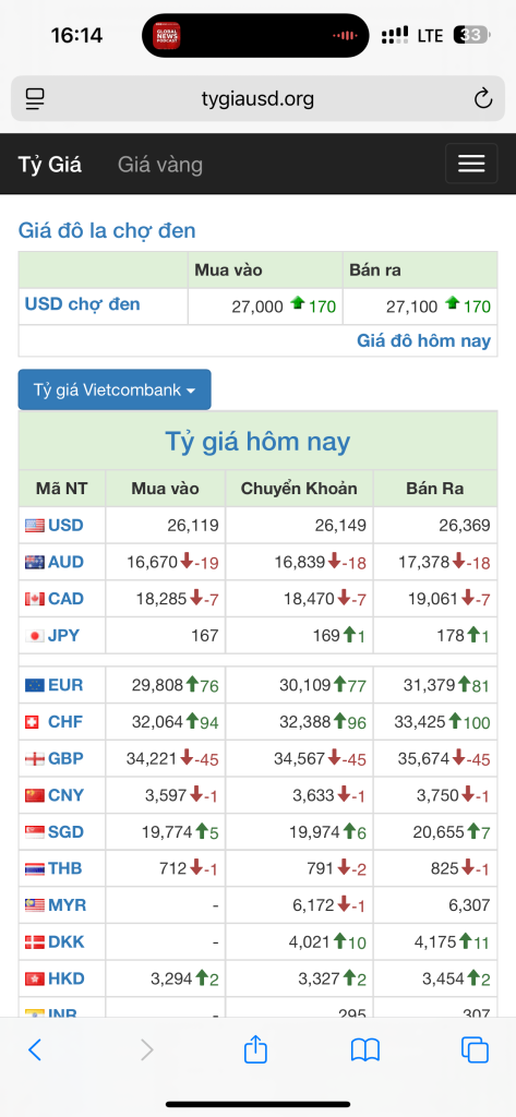 Đợt này cũng lên theo giá vàng luôn cụ nhỉChợ đen vượt 27! Nguồn ngoại hối đâu về chưa? Cuối năm rồi! Chị pink ngóng chờ