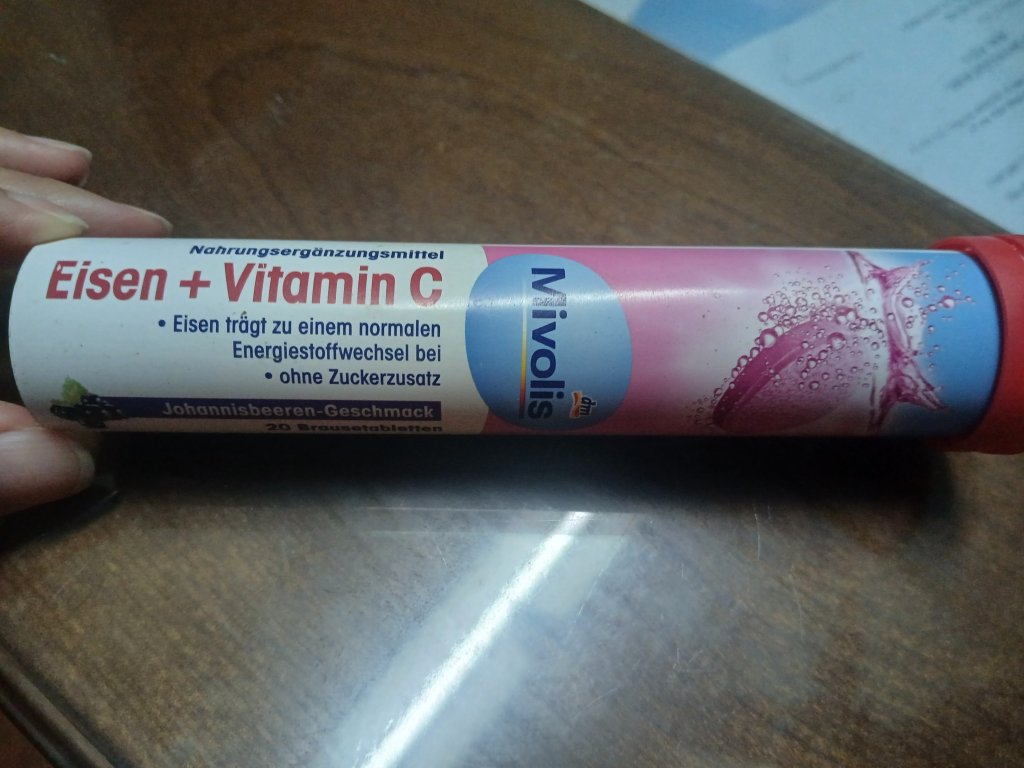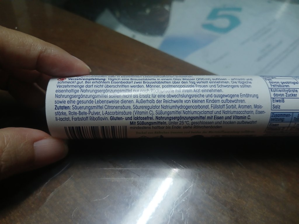 Thành phần: Chất tạo axit citric, chất điều chỉnh độ axit natri bicarbonate, chất tạo xốp sorbitol, hương liệu, tinh bột ngô, tinh bột, bột củ dền, axit L-ascorbic (vitamin C), chất tạo ngọt natri cyclamate và natri saccharin, sắt lactat, màu riboflavin. Không chứa gluten và lactose. Thực phẩm bổ sung sắt và vitamin C.