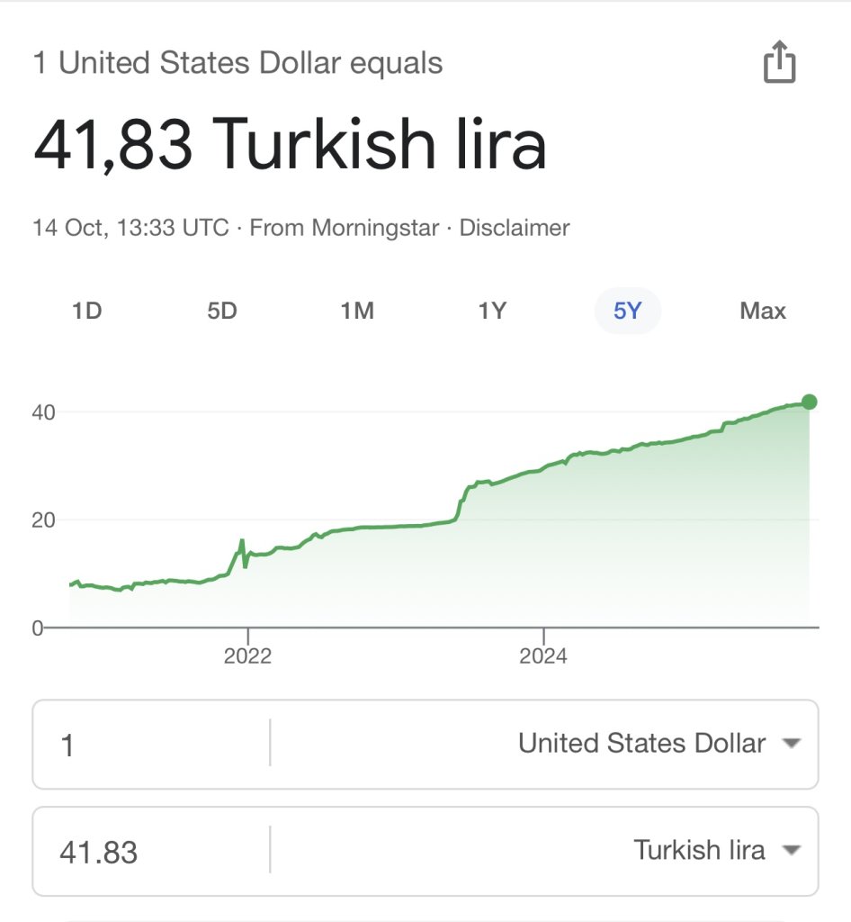 Haiau69 nói: Trường hợp của Thổ Nhĩ Kỳ cũng đáng lưu ý phết! Nền kinh tế lớn thứ 17 thế giới vào năm 2024. Trong 5 năm từ 8 lira ăn 1 usd lên 42 lira ăn 1 usd. Nhấn vào đây để mở rộng... Nói gì thì nói, usd nó vẫn mạnh mẽ