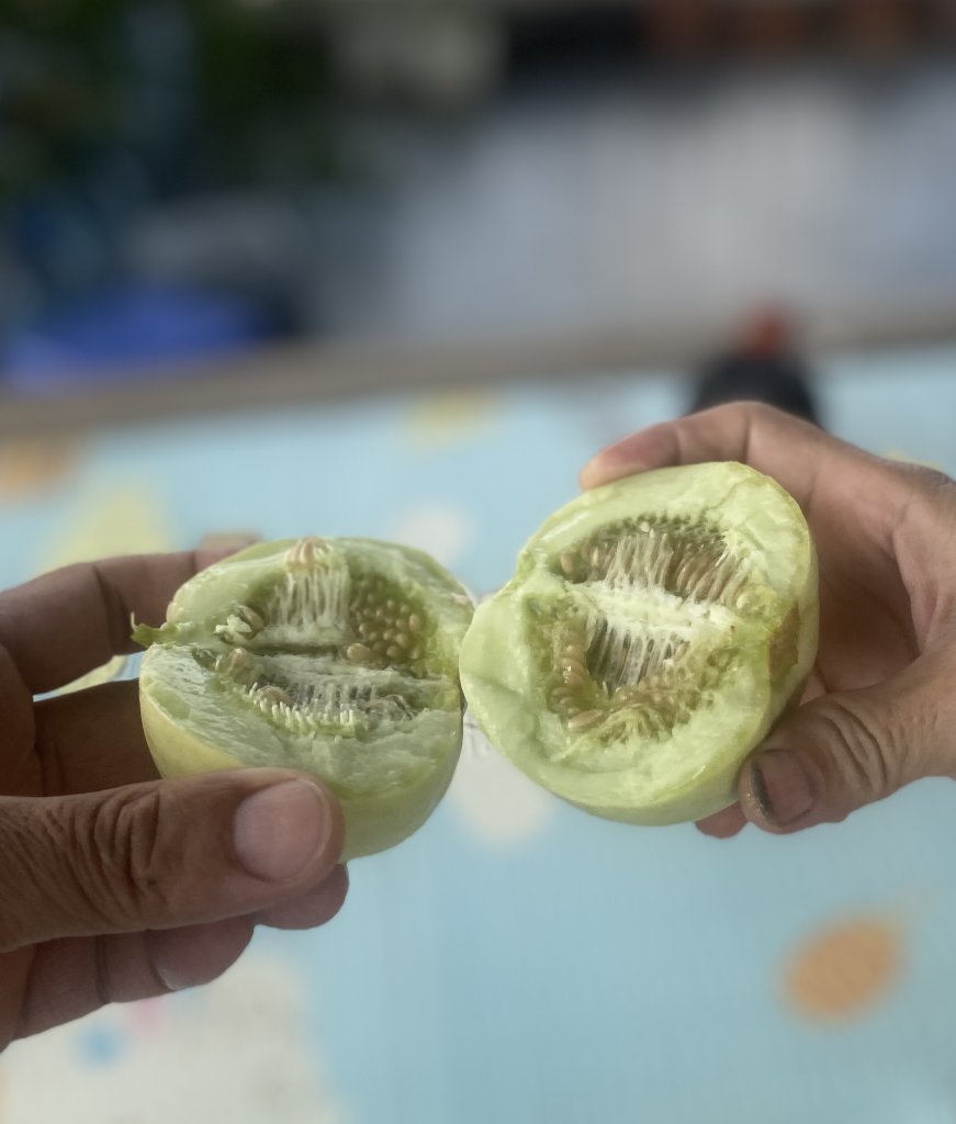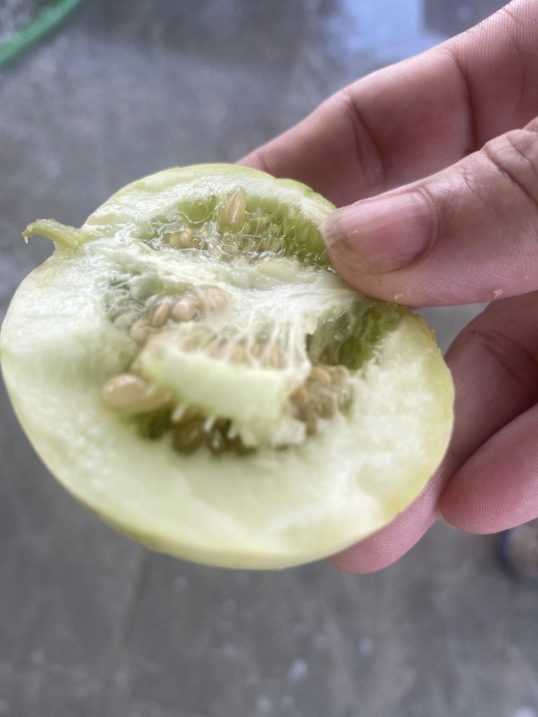 Năm nay em cũng giồng được mấy quả dưa lê bé xíu thế này vì vườn nhà chỉ vứt hạt ra, cũng ko cầu kỳ chăm bón gì. Cây này lên từ hạt rất dễ, quả lại ngọt và lành. Vụ dưa sang năm có khi em sẽ canh tác lấy làm 1 luống để hái quả ăn chơi![]()
