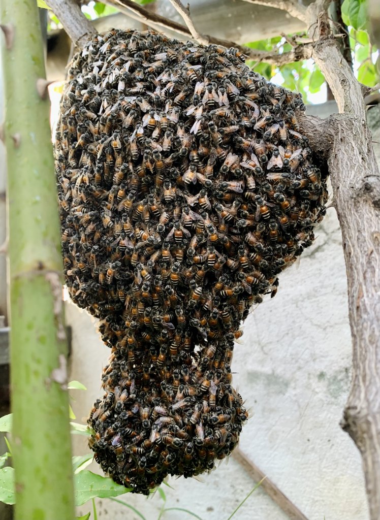 Này là quân số đông đúc quá nên phải xây thêm phòng ốc cho bầy ong sơ sinh ạ? Lần đầu em nhìn thấy đấy, nom sai trĩu, chỉ sợ gió mạnh sẽ rụng ra mất ạ 😅