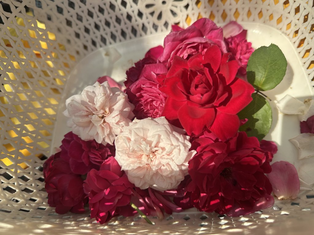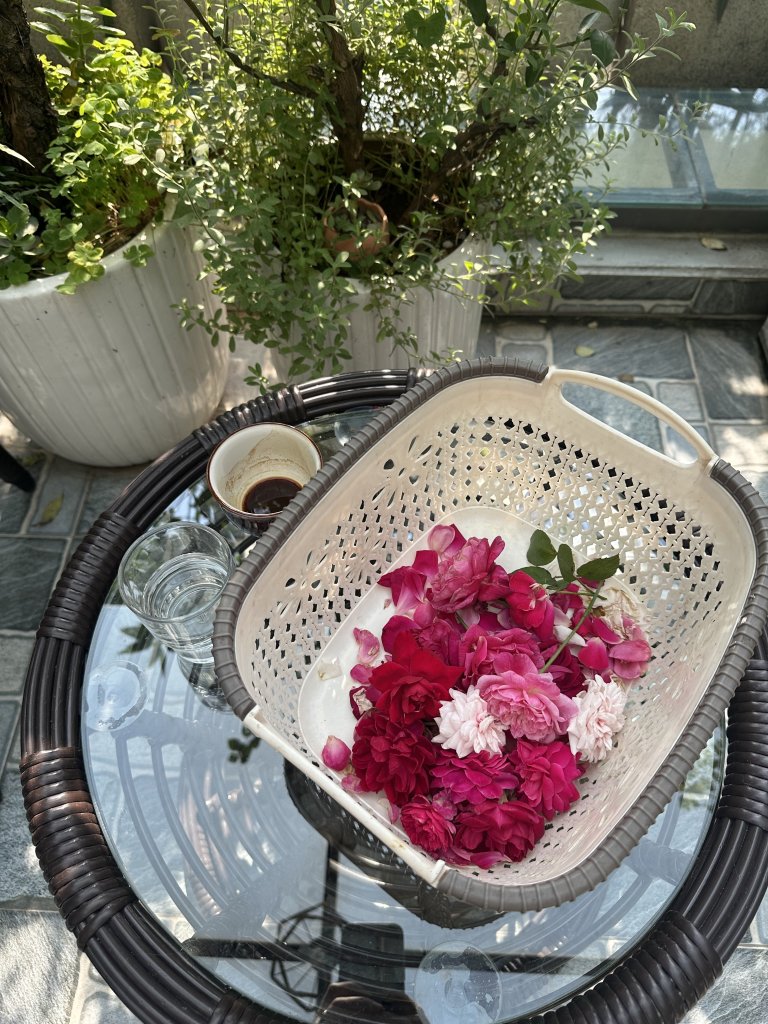Sáng náy em thu hoạch cánh hoa hồng để pha trà, làm thuốc này mợ