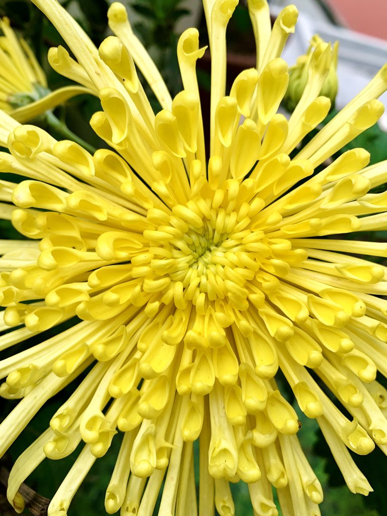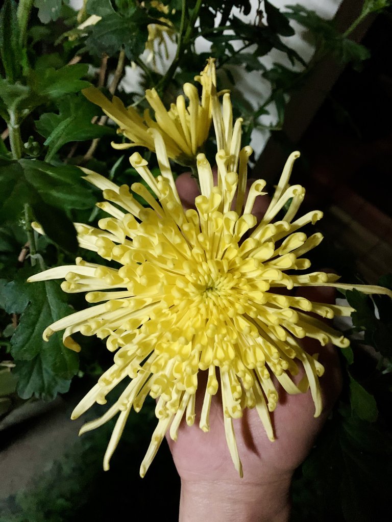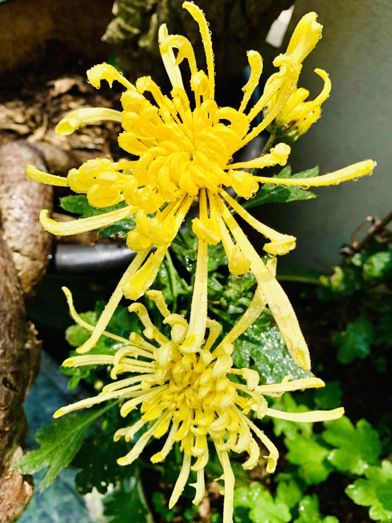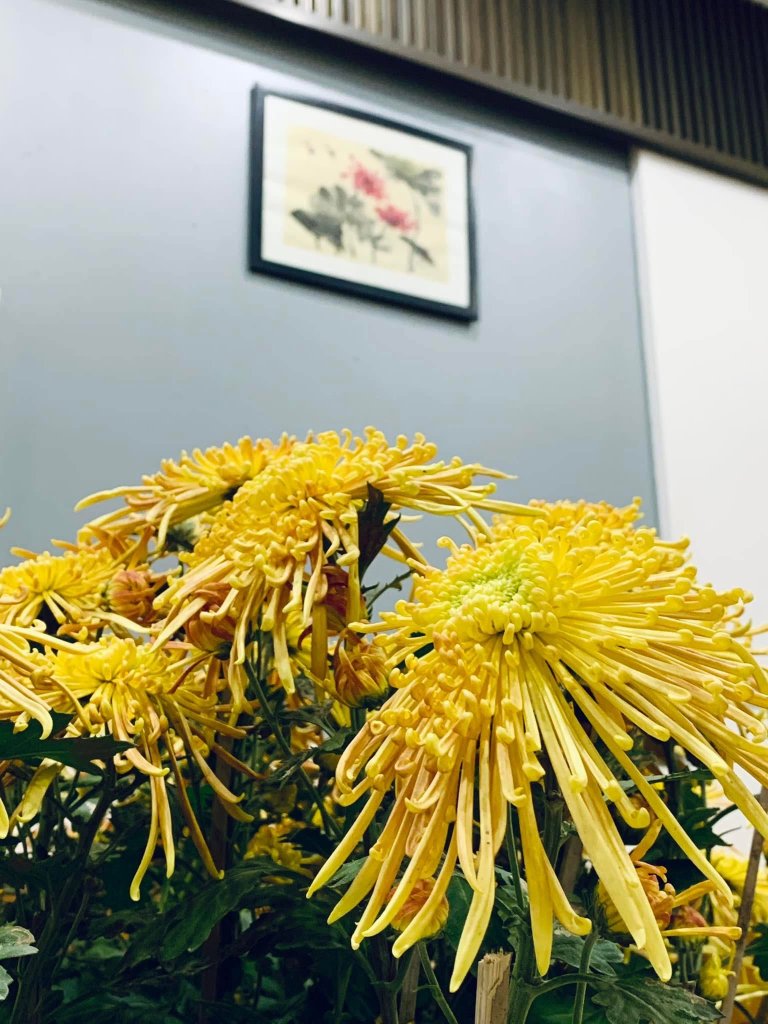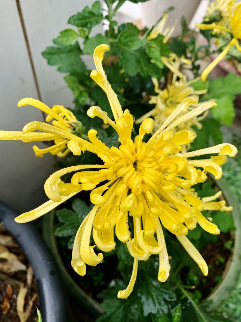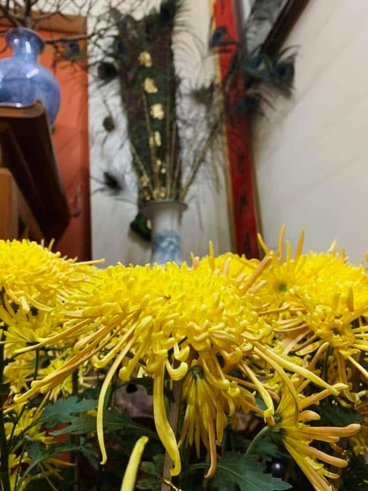 Cúc cổ cụ ah. Em có Bạch lệ mi và Hoàng long cảo, loại này đặc điểm là cánh hoa buông dài ra và có hình ống, rất bền hoa, tầm 1-2 tháng mới tàn và mùa dài từ giáp Tết đến tháng 4 âm.Em dám chắc mỗi lần cụ Tý chụp ảnh là 1 tay máy, 1 tay bình phun nước.